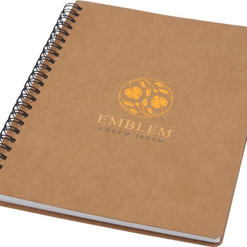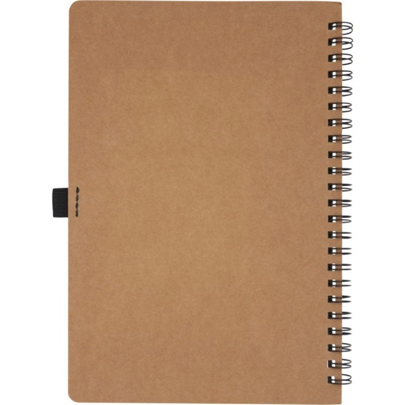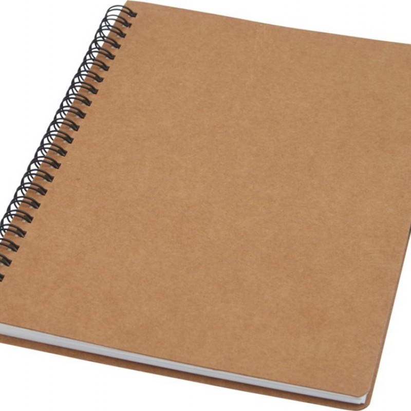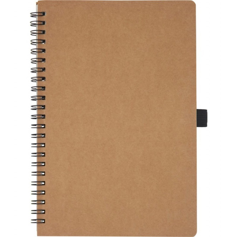 Блокнот на пружине формата A5, изготовленный из переработанного картона, с петлей для ручки. Содержит 70 листов в линию плотностью 60 г/м², изготовленных из каменной бумаги. В производстве каменной бумаги не используется дерево, а на сам процесс изготовления затрачивается гораздо меньше энергии в сравнении с производством переработанной или целлюлозной бумаги. Бумага водонепроницаемая и стойкая на разрыв. Имеет естественный белый цвет (без отбеливания).