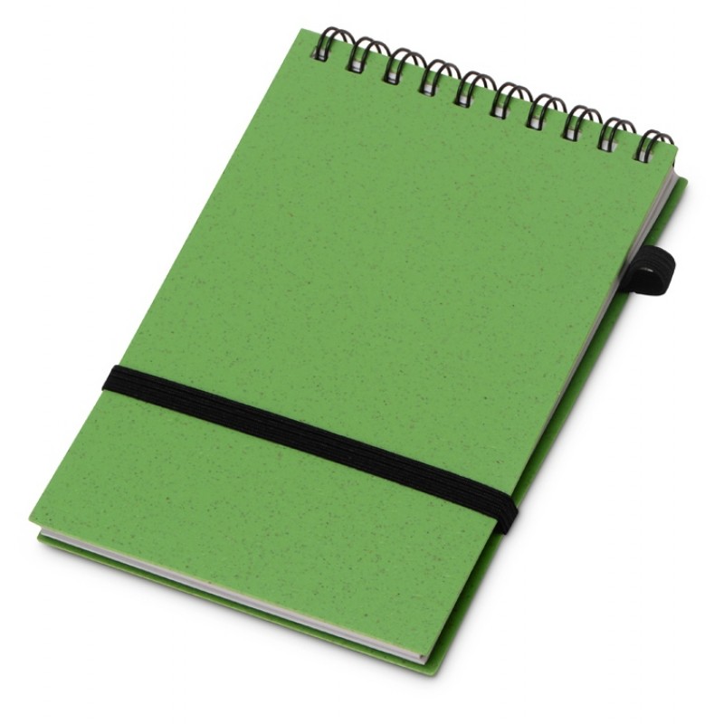 Блокнот с обложкой из переработанной пшеницы и пластика. Блок состоит из 60 листов переработанной бумаги белого цвета. Крепление - пружина. Дополнен петлей для ручки и горизонтальной резинкой. Тампопечать (1 цвет (цветные изделия)) на данный товар осуществляется бесплатно. Оплачивается только настройка оборудования в размере 3600 рублей на весь тираж.