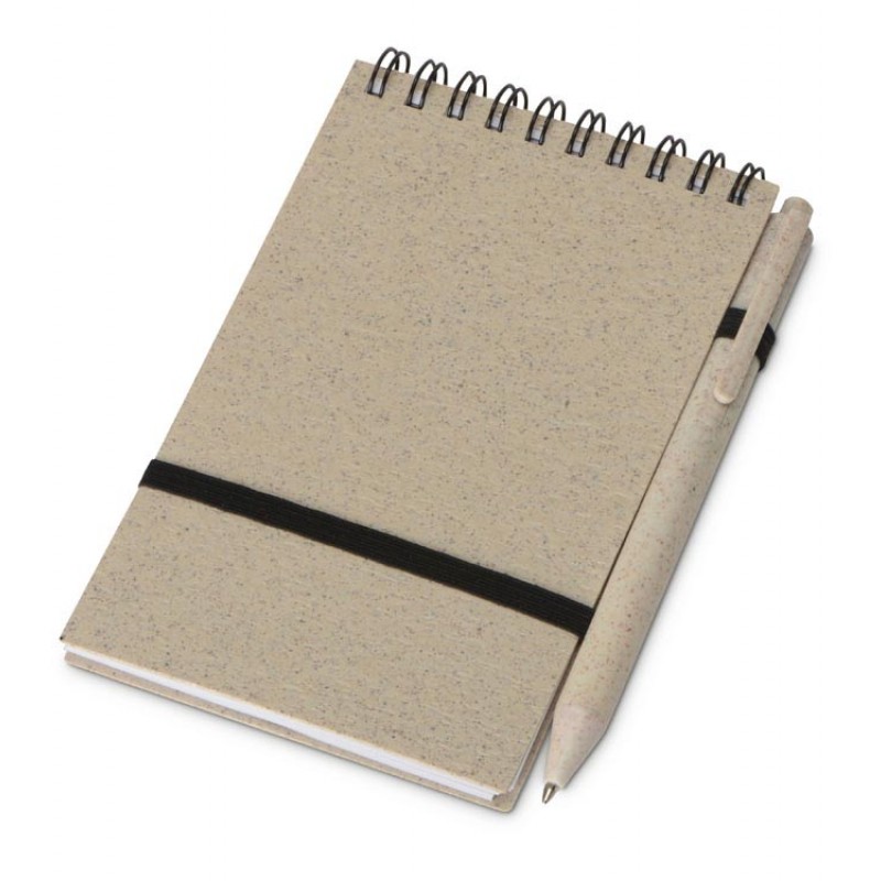 Блокнот с обложкой из переработанной пшеницы и пластика. Блок состоит из 60 листов переработанной бумаги белого цвета. Крепление - пружина. В комплекте шариковая ручка из пшеничной соломы. УФ-печать (УФ-печать ежедневники, блокноты) на данный товар осуществляется бесплатно. Оплачивается только настройка оборудования в размере 1600 рублей на весь тираж.
