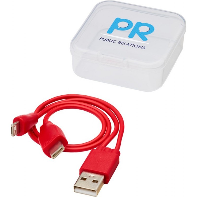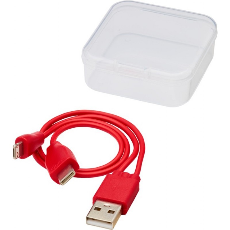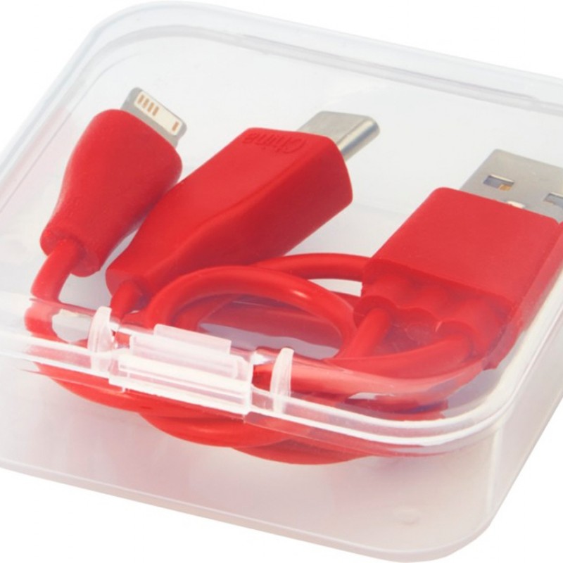 Зарядный кабель 3-в-1 оснащен разъемом USB типа С и двойным разъемом 2-в-1, подходящим для устройств как на Apple® iOS, так и на Android. Micro USB и разъем 2-в-1 до 2 А. Разъем Type-C до 3 А. Поставляется в защитном футляре.