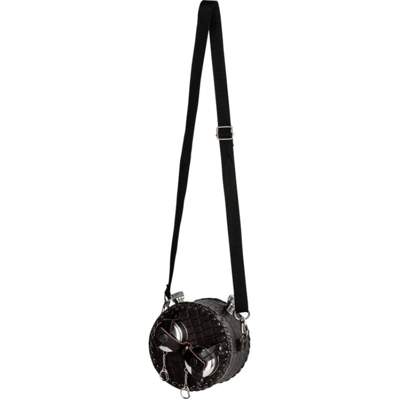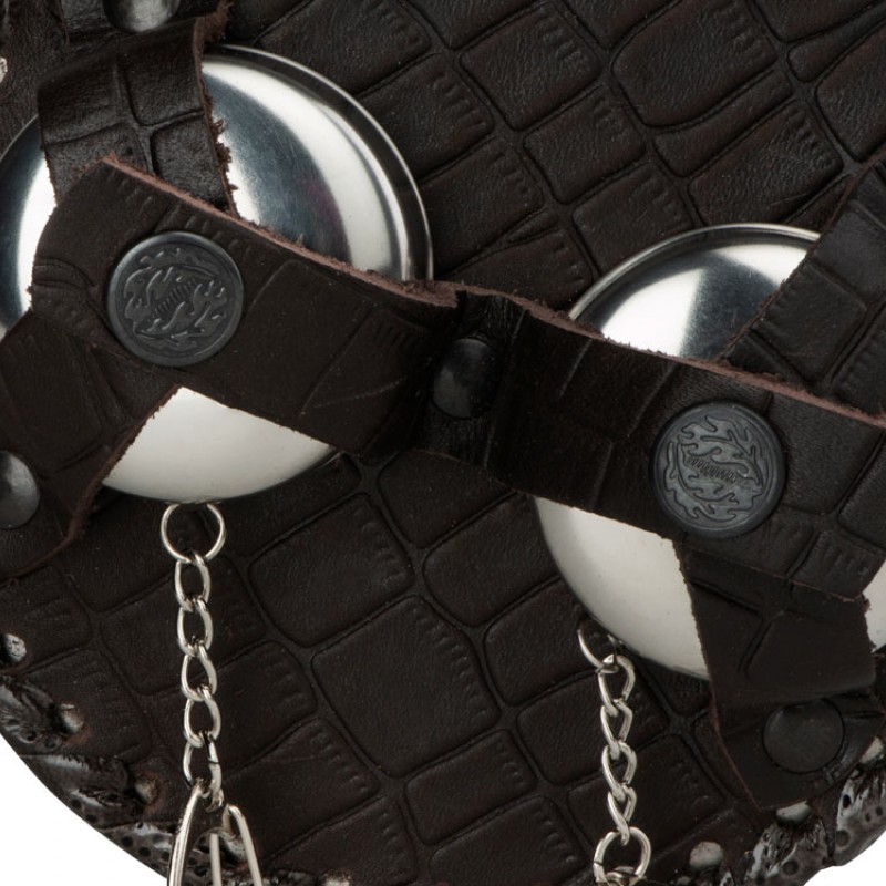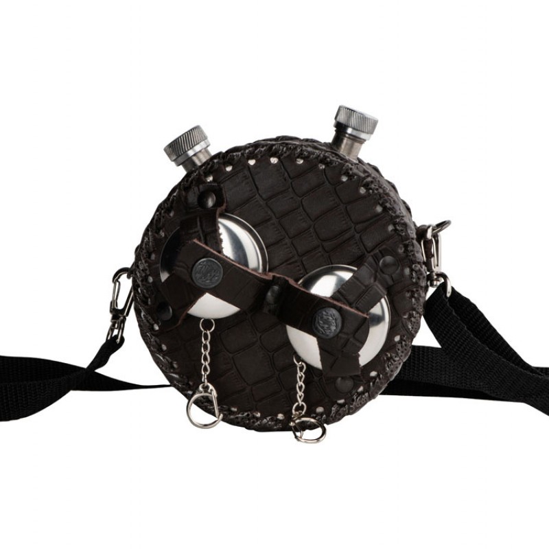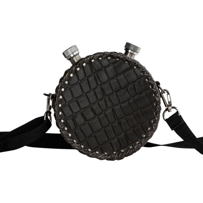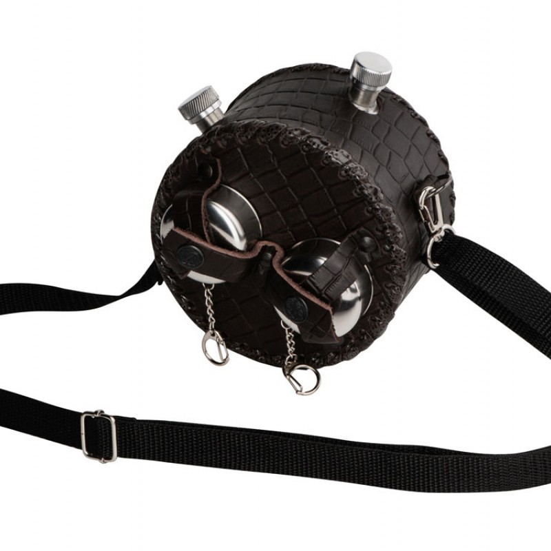 Двойная фляга из нержавеющей стали в оплетке из натуральной кожи.