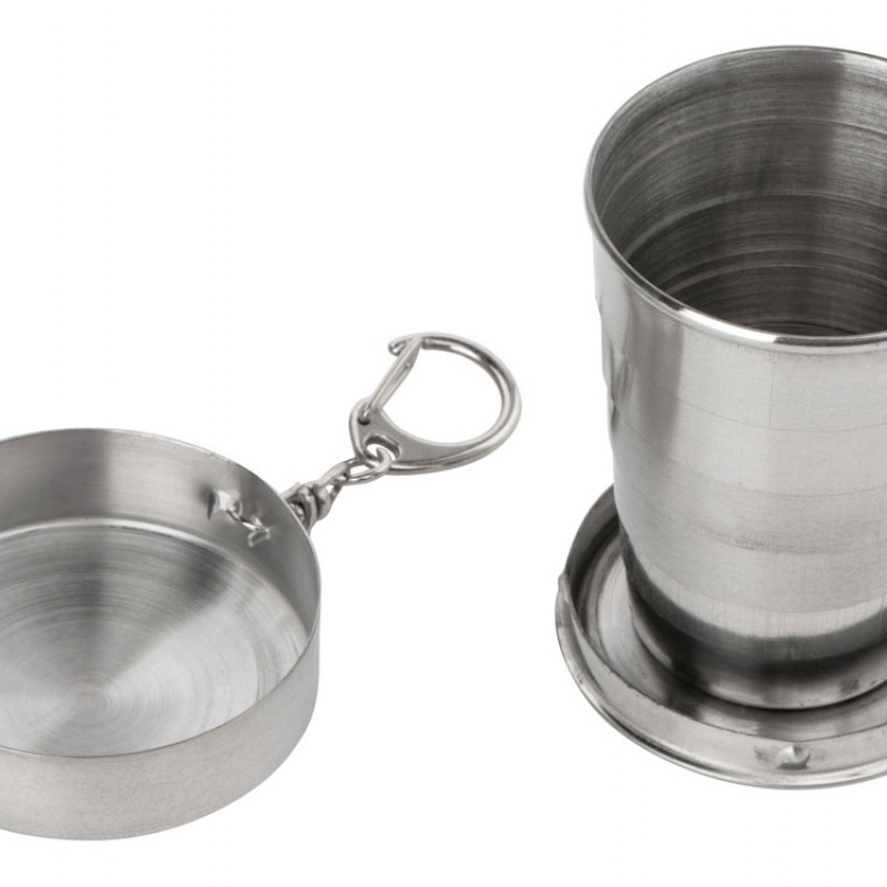 Удобство использования: В комплект входят два складных стаканчика по 60 мл, также выполненных из нержавеющей стали. Они надежно крепятся к фляге с помощью ремешков на кнопках, что позволяет всегда иметь их под рукой.