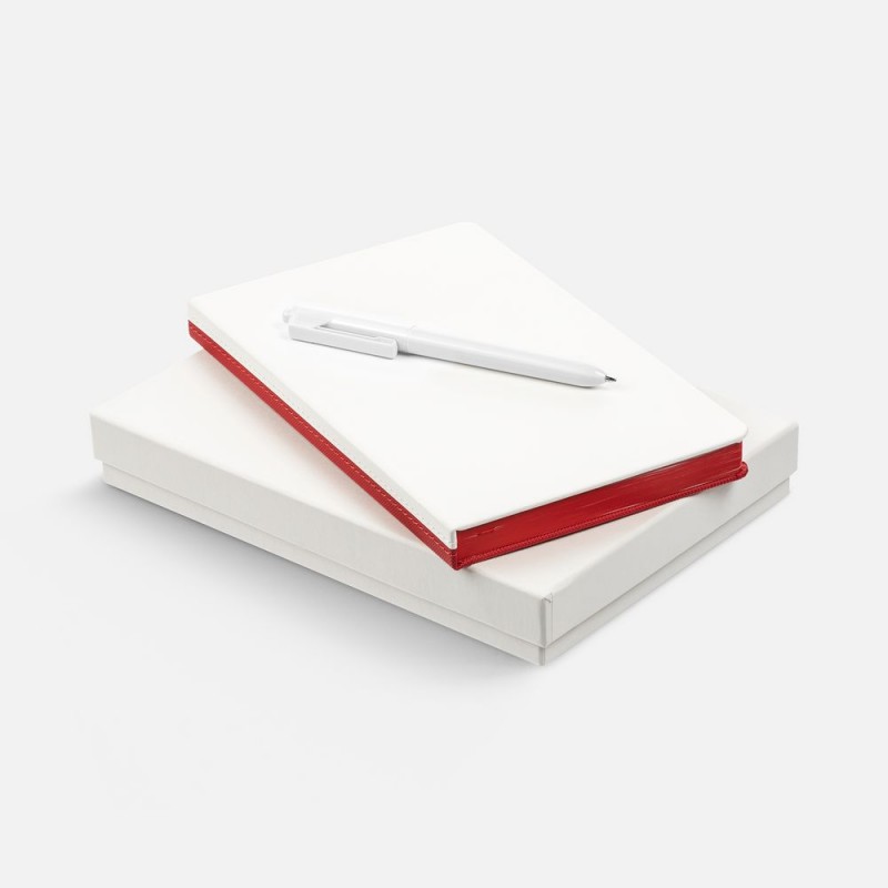 Недатированный двухцветный ежедневник с твердой обложкой из фактурного материала Canyon с ляссе и двухцветная ручка в тон.