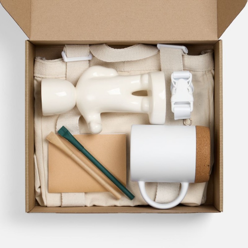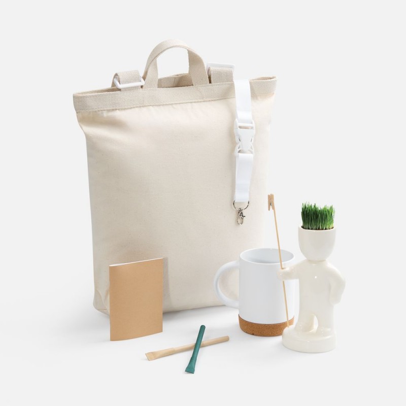 | Материал | рюкзак - хлопок, плотность 280 г/м²; набор для выращивания Funky Headman - керамика; кружка - каменная керамика, подставка - пробка; коробка - микрогофрокартон, Т-23Е; лента - нейлон, пластик; металл; блокнот, ручка - картон |