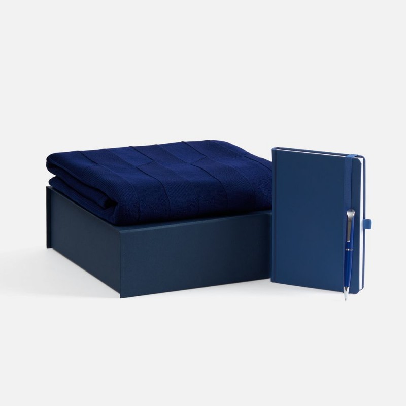 Однотонный набор с основной канцелярией и пледом — классика жанра в уютном исполнении. С компактным ежедневинком будет удобно делать заметки в любое время — благодаря петельке для ручки любимый пишущий инструмент будет всегда под рукой. А изысканный акриловый плед с геометрическим узором позволит выразить самые теплые пожелания и ддобавит плавных линий в интерьер.