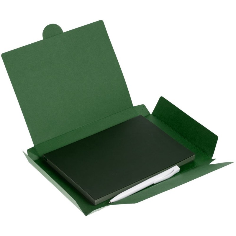 Компактный набор со стильным ежедневником в гибкой обложке с покрытием софт-тач и подходящей ручкой. Все составляющие сложены в самосборную коробку, которая придает набору законченность.