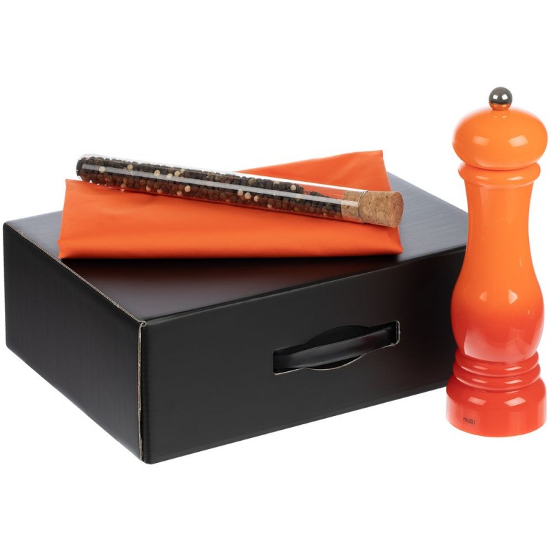 | Размеры | мельница: диаметр 6,1 см, высота 21 см; приправа: высота 20,2 см, диаметр 2,1 см; фартук 67,5x60,5 см; коробка 26x19x9 см |