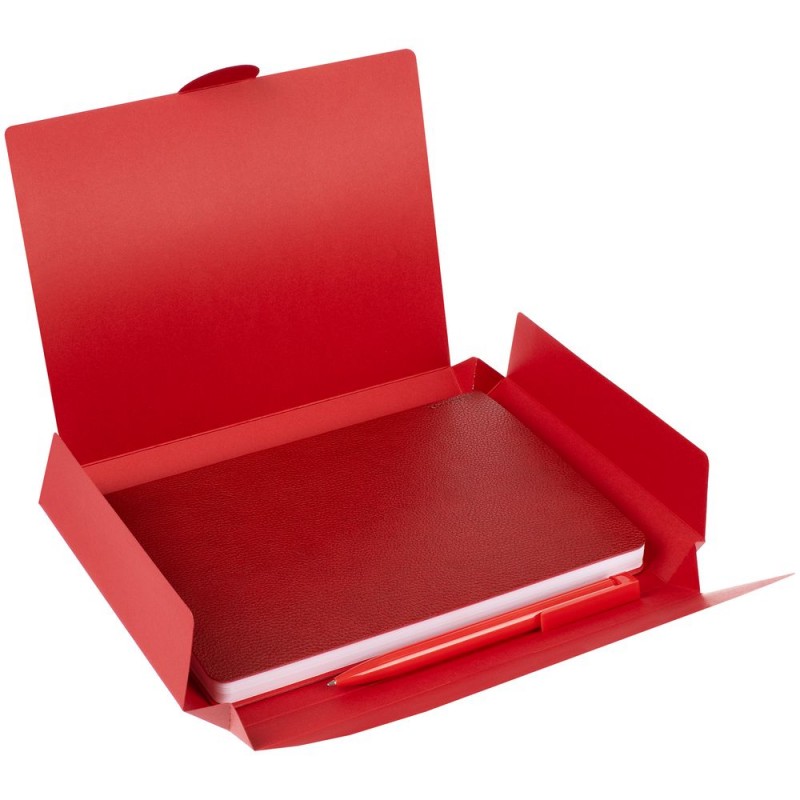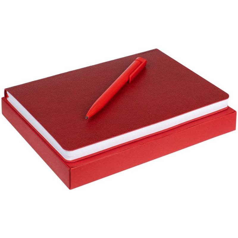Недатированный ежедневник с гибкой обложкой из фактурного материала La Fite и металлическим шильдом на ляссе и ручка в тон, упакованные в подарочную коробку из дизайнерского картона.