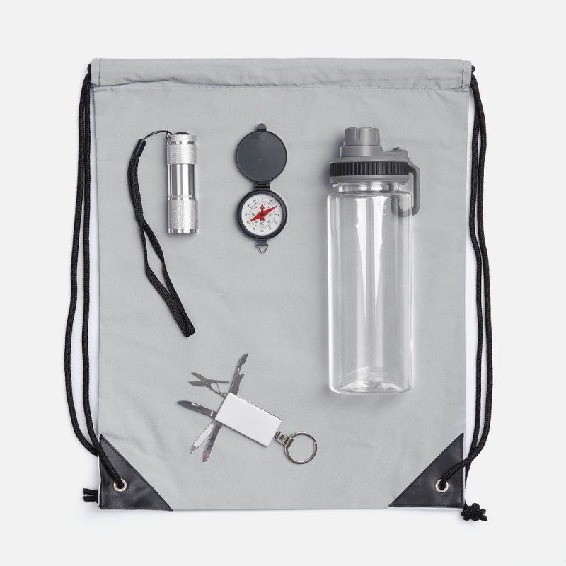 Набор Manifestour — практически survival kit для вылазки на природу! Входящие в состав брелок-мультитул, компас, бутылка для воды и фонарик — незаменимые вещи в любом путешествии, а благодаря рюкзаку из светоотражающей ткани вас легко будет заметить в темное время суток.Объем рюкзака 10 л.