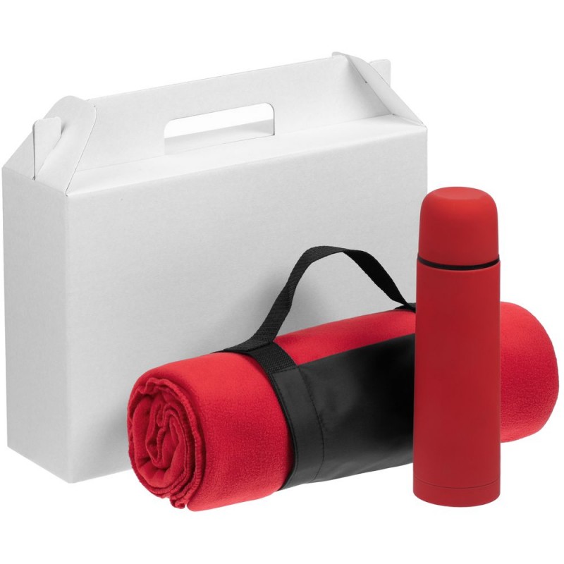 | Материал | плед - флис, плотность 180 г/м²; термос - нержавеющая сталь, 304 внутри, 201 снаружи, пластик, покрытие софт-тач; коробка - микрогофрокартон |
