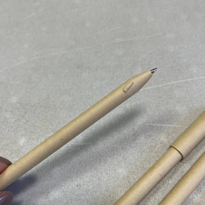 Ручка с корпусом из переработанной бумаги. Оригинальный дизайн, приятная на ощупь поверхность. Картон позволяет легко делать нанесение как на теле ручки, так и на колпачке. Тампопечать (1 цвет (цветные изделия)) на данный товар осуществляется бесплатно. Оплачивается только настройка оборудования в размере 3600 рублей на весь тираж.