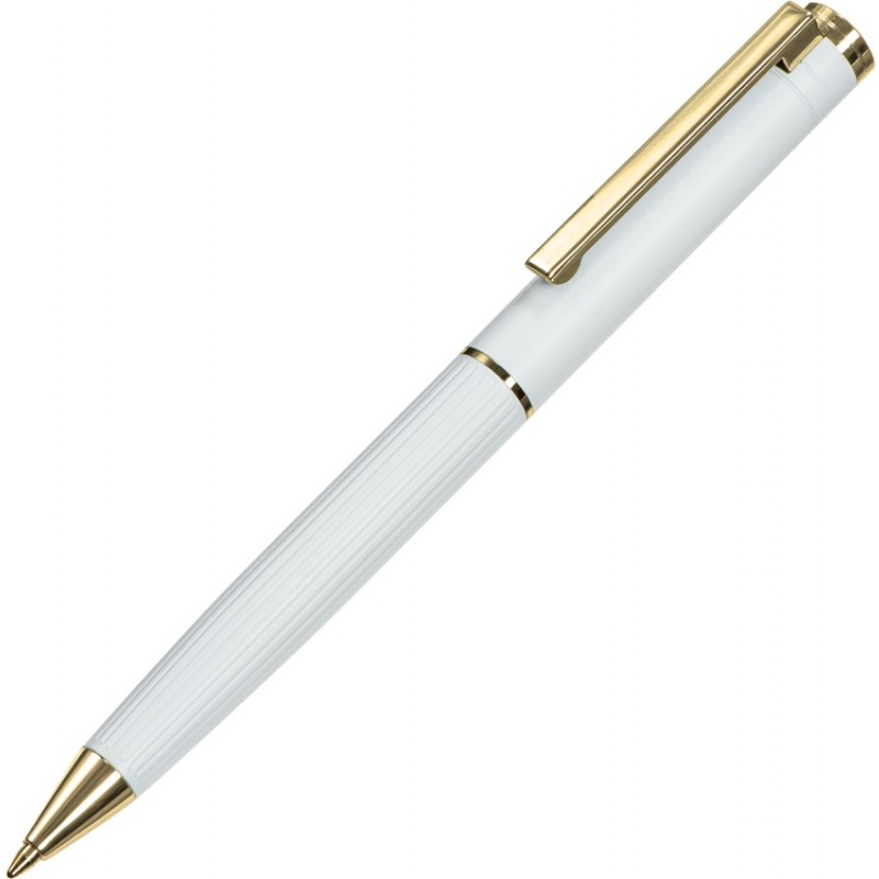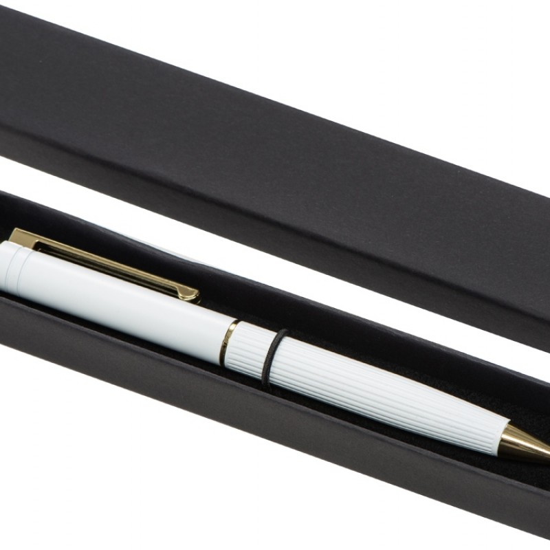 Современное прочтение классической ручки с золотистыми деталями, при гравировке верхней части рядом с клипом вскрывается золотистым слоем, ребристая часть вскрывается серебром.