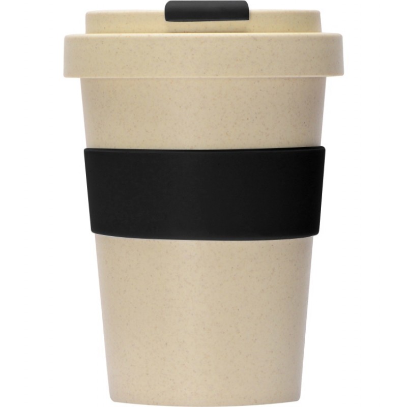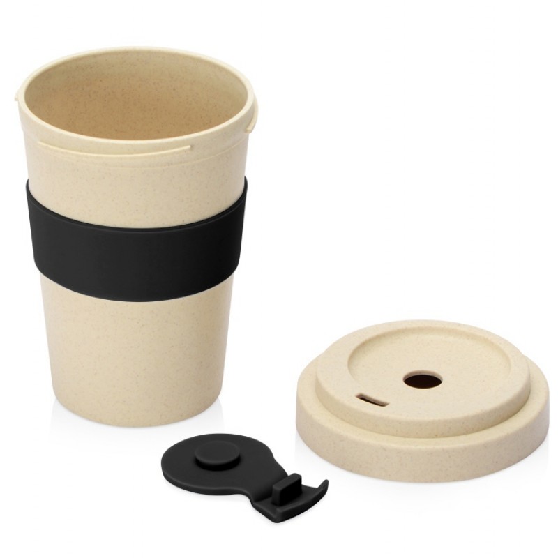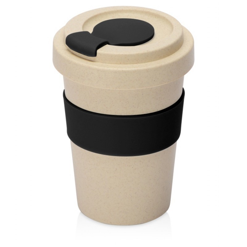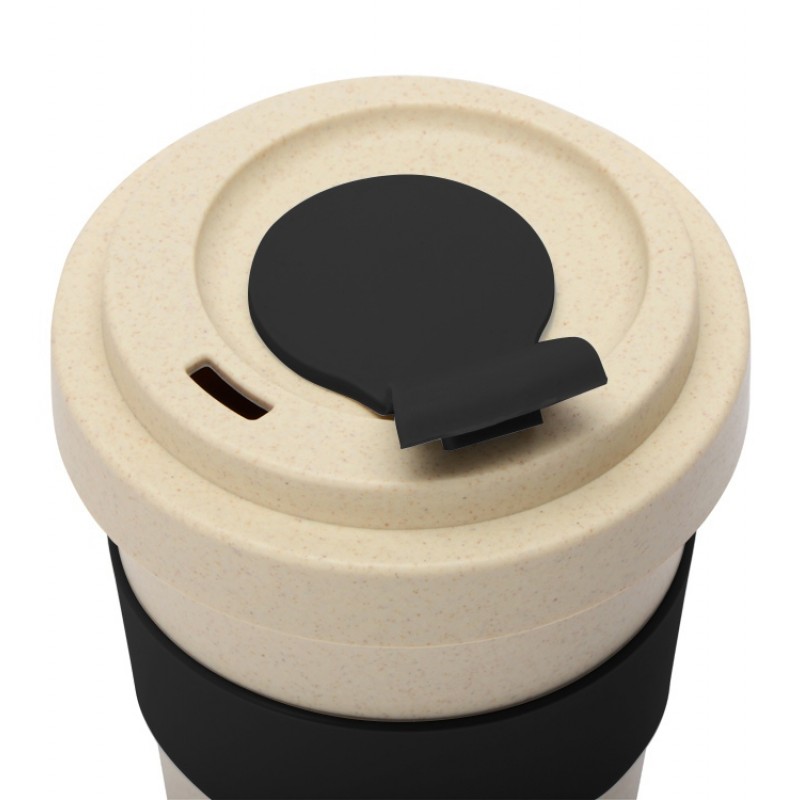 Стакан с пшеничным волокном с силиконовой манжетой и клапаном на крышке, черный