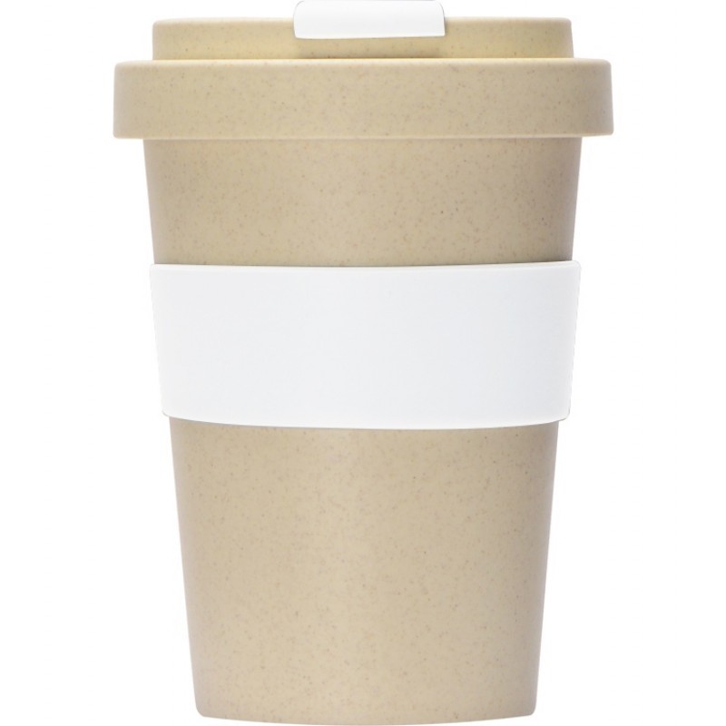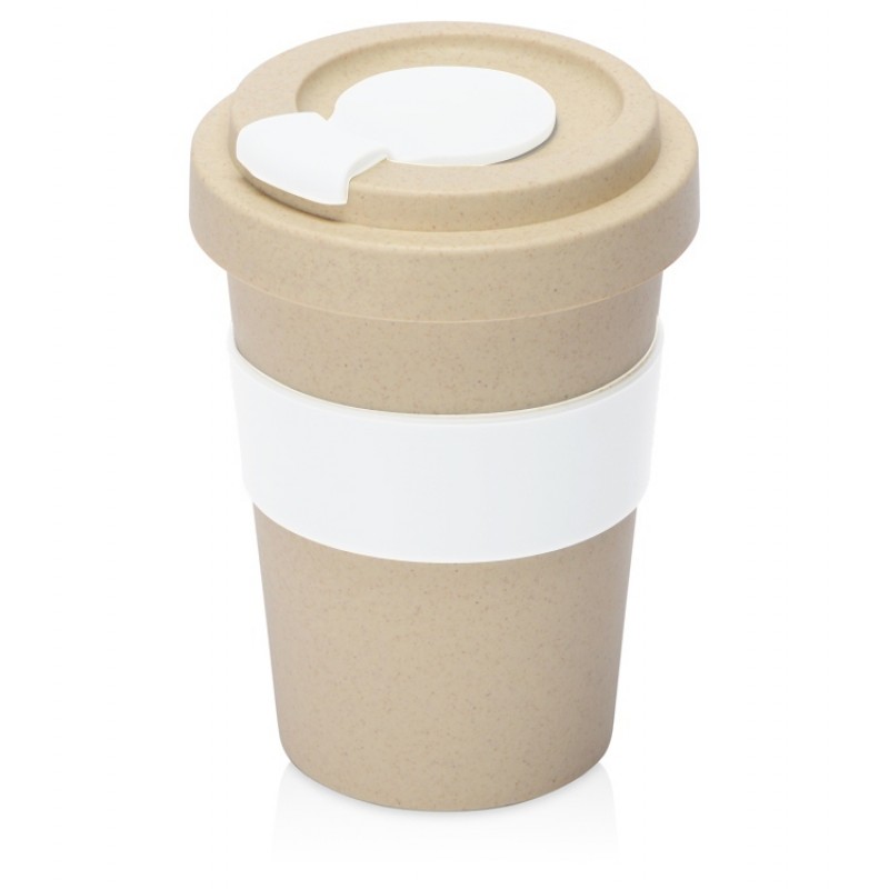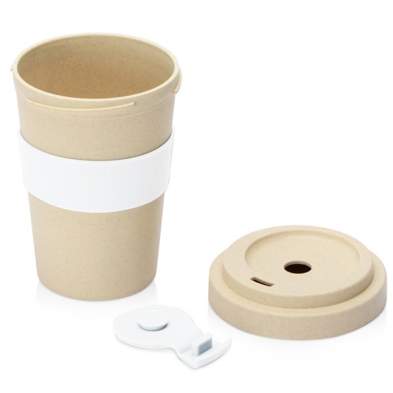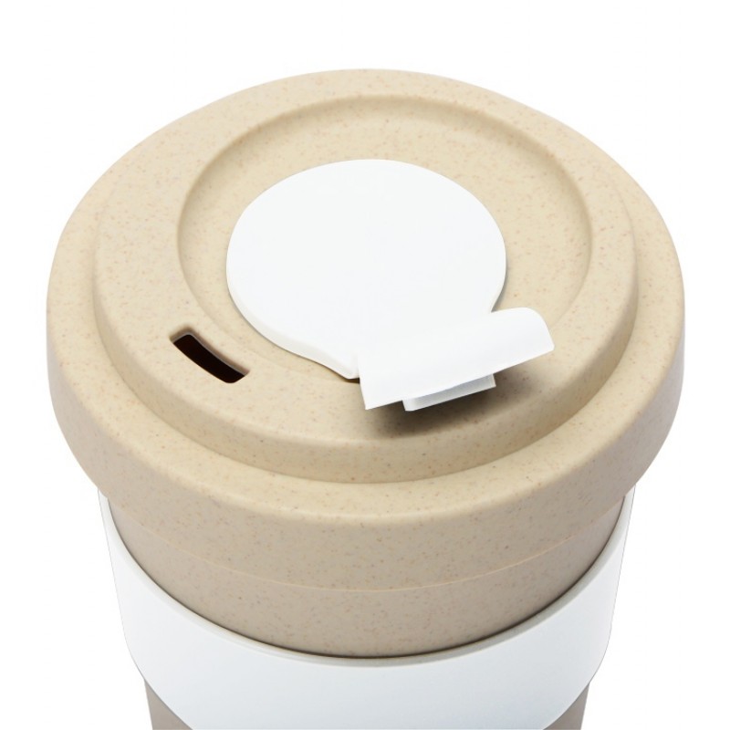 Стакан с пшеничным волокном с силиконовой манжетой и клапаном на крышке, белый