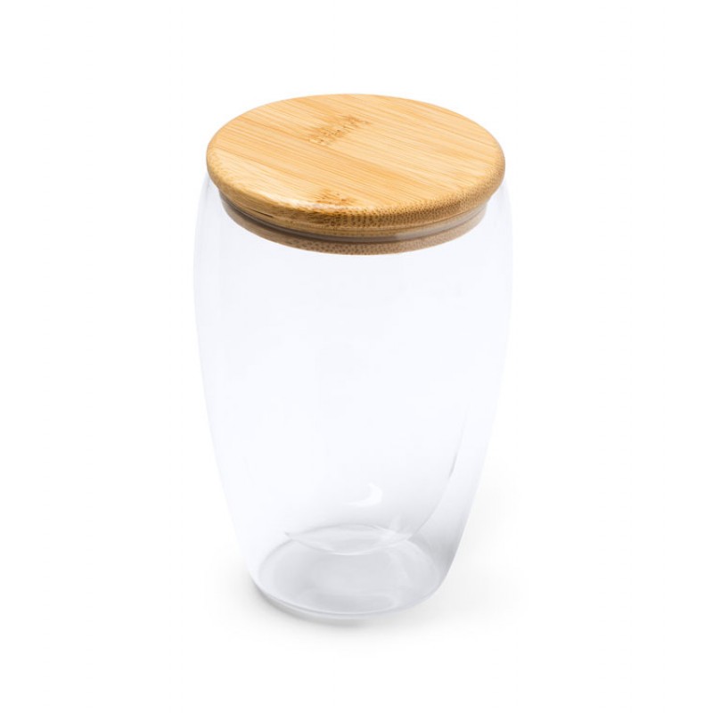 Двустенный стакан из боросиликатного стекла с бамбуковой крышкой. Идеально подходит для подарков и сюрпризов вашим клиентам. Емкость 350 мл.