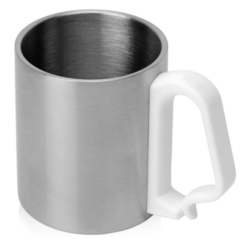 Стальная кружка Climber с пластиковой ручкой, серебристый/белый