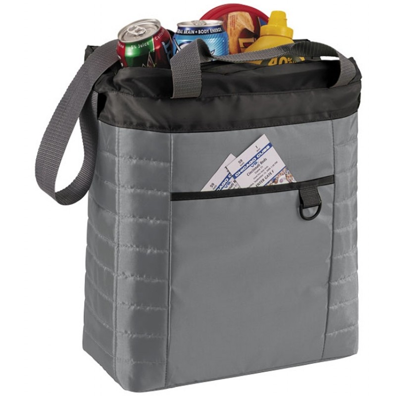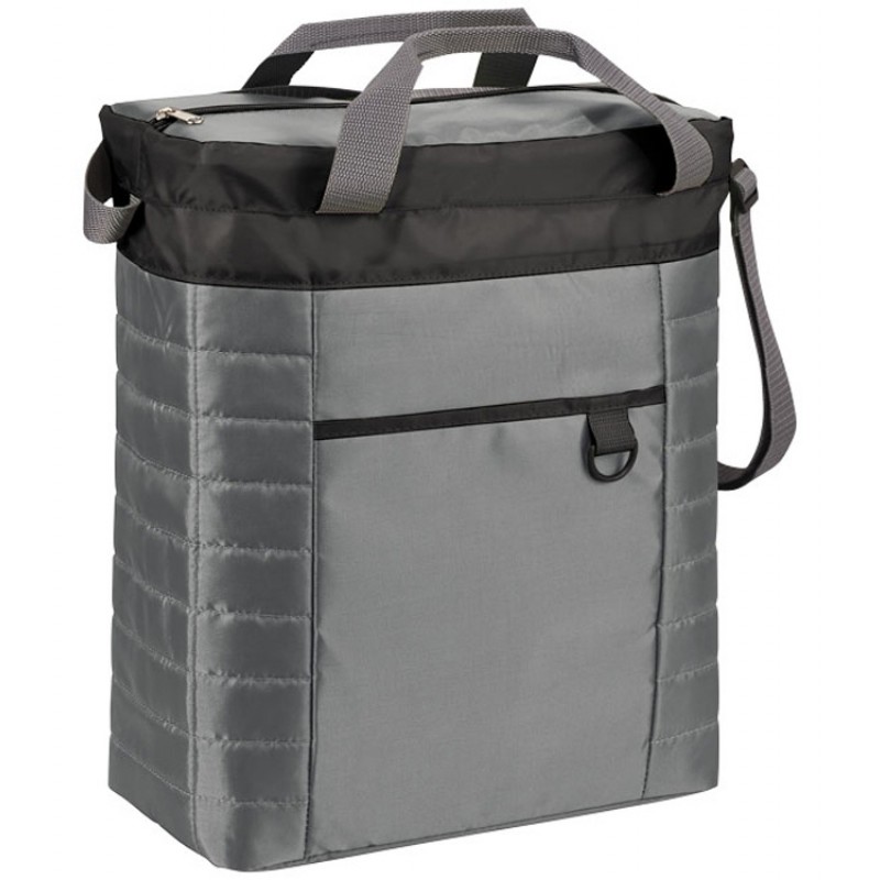 Стеганая сумка-холодильник. В комплекте: регулируемый ремень на плечо и ручки высотой 14 см. Стеганый корпус. Изоляционное отделение на молнии. Есть карман спереди и пластиковая петелька для ключей. 210D нейлон/ПВХ.