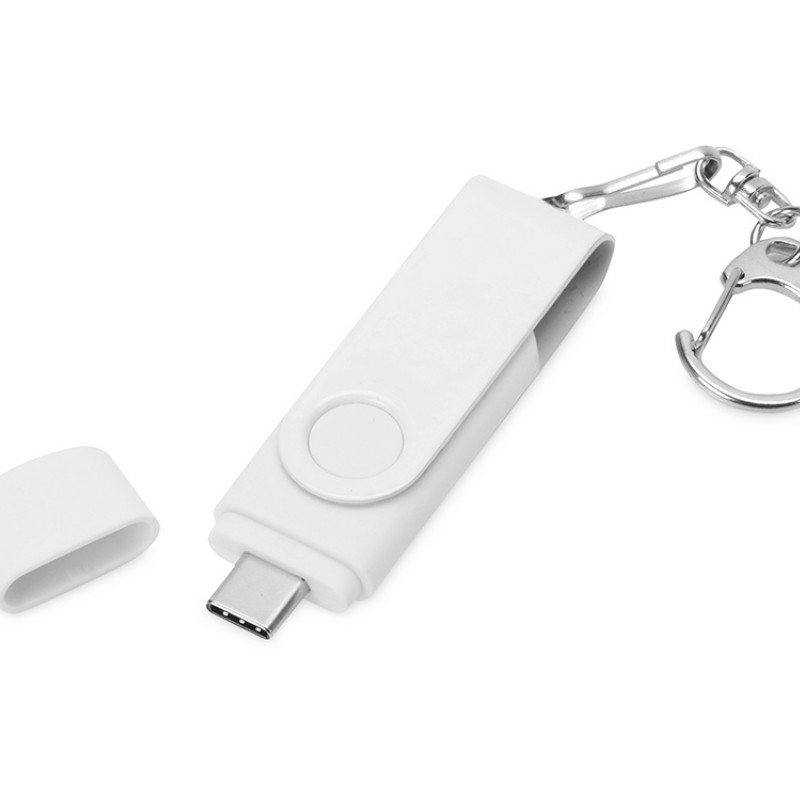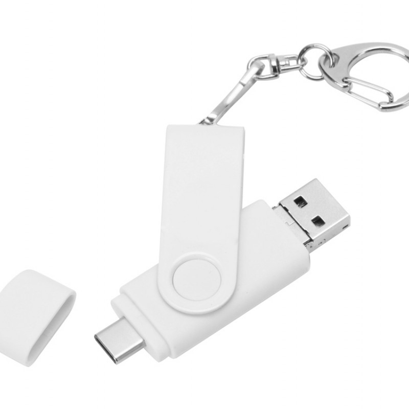 Флеш-накопитель поворотный механизм, c двумя дополнительными разъемом Micro USB и TypeC, с одноцветным металлическим клипом., объем памяти USB3 32 Гб. Пластиковый корпус.