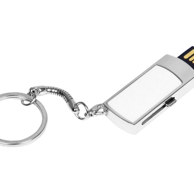 Флеш-накопитель прямоугольной формы, выдвижной механизм с мини чипом, 32 Гб. Металлический корпус с пластиковой вставкой.