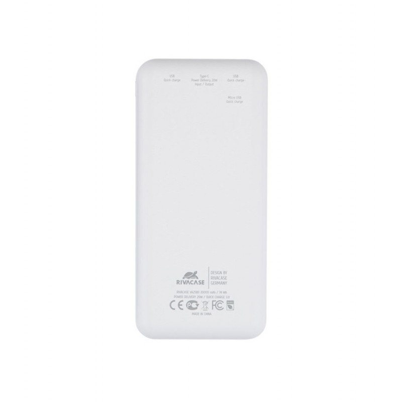 RIVACASE VA2580 (20 000mAh), QC/PD 20W внешний аккумулятор с дисплеем, белый /24