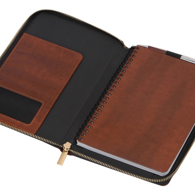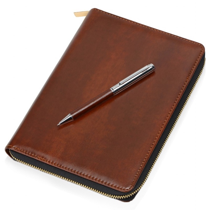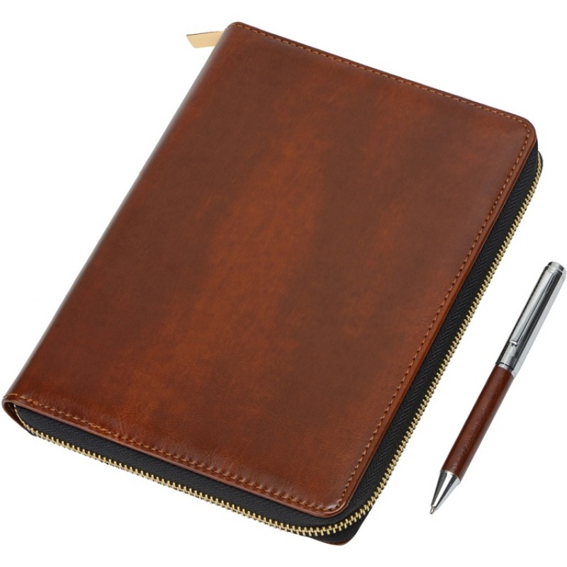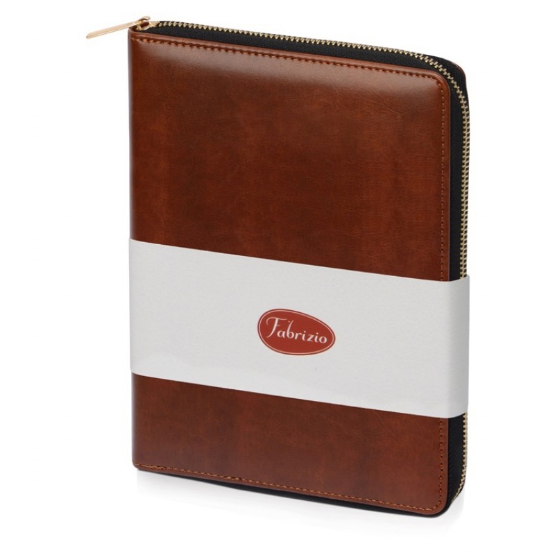 Бизнес-блокнот на молнии А5 Fabrizio с RFID защитой и ручкой, коричневый