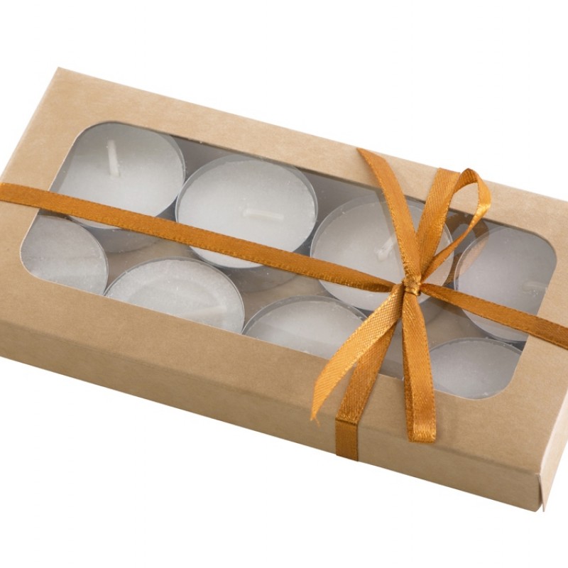 Свечи выполнены из белого воска без запаха, упакованы в крафтовую коробку с прозрачным окошком и перевязаны шелковистой ленточкой. В каждой коробке — 8 свечей.- только приятные предсказания