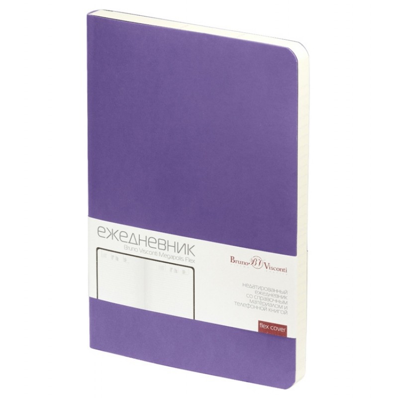 Недатированный ежедневник Megapolis Flex от бренда Bruno Visconti - это качественный корпоративный подарок по выгодной цене, произведенный специально под персонализацию. Представлен в универсальном формате А5 и состоит из 272 страниц. Элегантная закругленная flex обложка из гладкого кожзама имеет гибкую конструкцию и приятна на ощупь. А интегральный переплет позволяет сэкономить место в деловой сумке или портфеле – ежедневник можно просто свернуть в трубку или согнуть пополам.