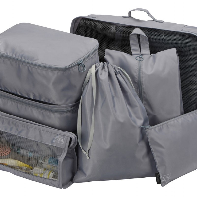 Набор чехлов для одежды от бренда Voyager, выполненный из прочного качественного полиэстера 290D, организует ваши вещи в чемодане во время путешествия и поможет разместить их комфортно в шкафу. В отличие от пакетов чехлы многоразовые, что наверняка понравится защитникам природы, их легко стирать, сушить и хранить. Набор состоит из восьми чехлов, упакованных в один большой с сетчатой стенкой. Этот чехол оборудован ручкой для переноски и кнопками на задней стенке, которые позволяют компактно сложить изделие вдвое в зафиксированном положении для хранения.