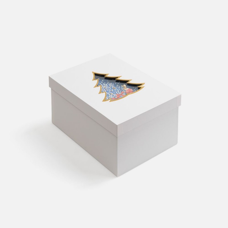 Белоснежные коробки из переплетного картона с очаровательным окошком в форме елочки создают ощущение праздника. Загляните внутрь — там вас встретит милый зайчик с подарками. 3D-иллюстрация наполняет пространство теплом и радостным предвкушением чуда, а подвижные шарики из пенопласта вызывают по-настоящему детский восторг.Оригинальный дизайн с нежными рисунками превращает даже обычную коробку в источник новогоднего настроения. Практичные и стильные, коробки Christmas Tree идеально подойдут для упаковки подарков, хранения праздничных украшений и создания сказочной атмосферы в доме.