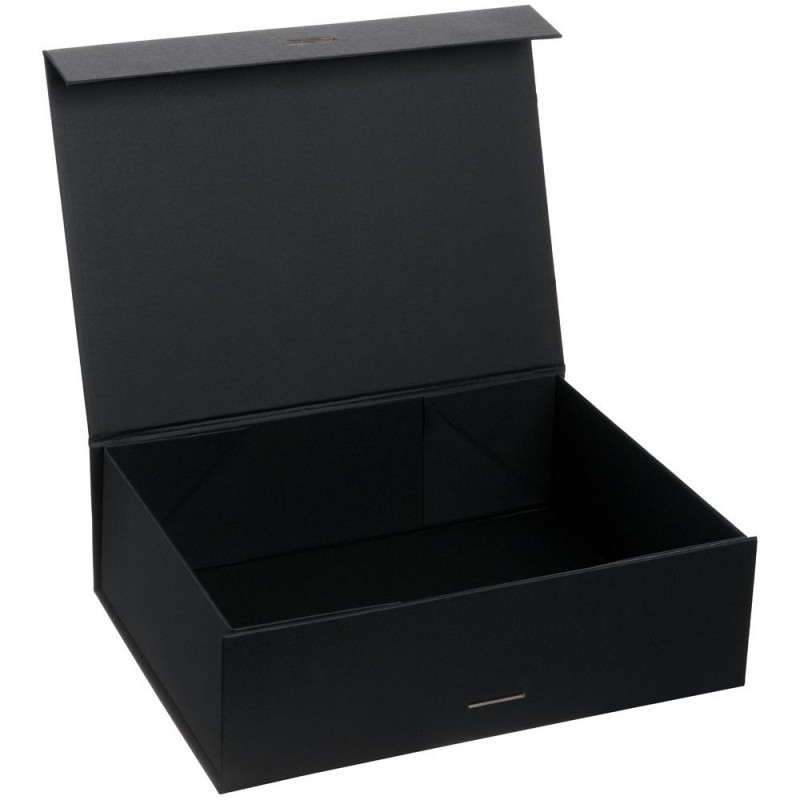 Коробка из переплетного картона, кашированного тонированной в массе крафтовой бумагой. Крышка на двух магнитах дополнительно фиксируется репсовой лентой.Толщина картона 2 мм.