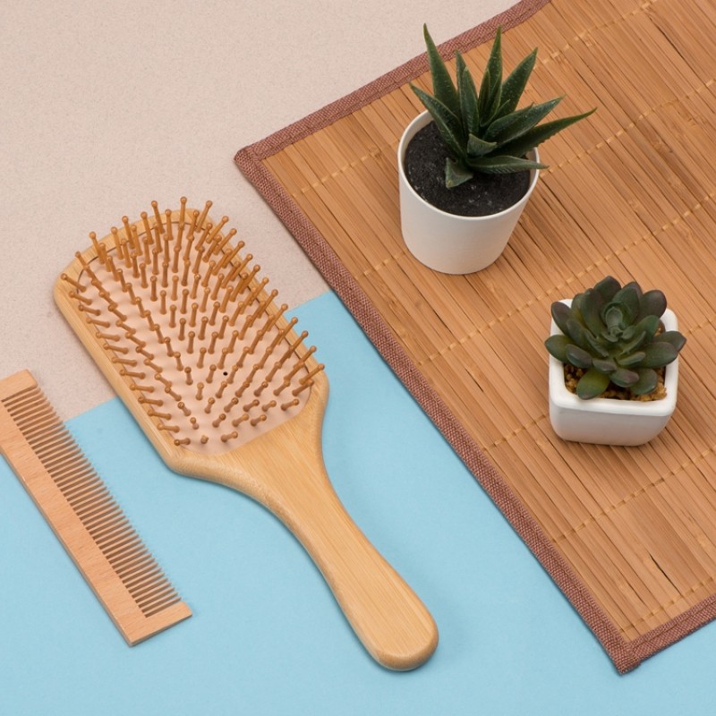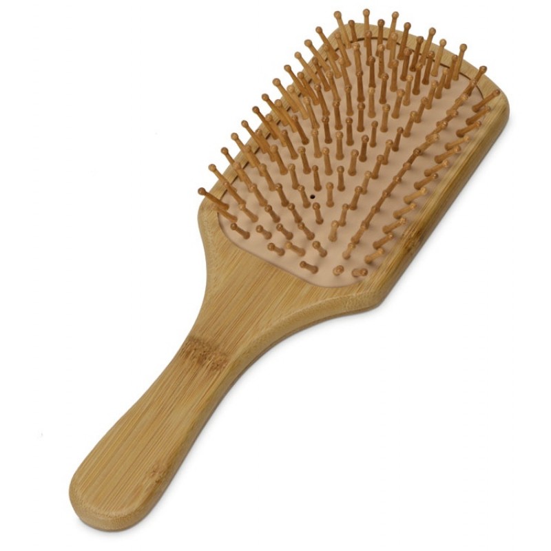 Массажная щетка для волос Bambola из бамбука бережно расчесывает сухие и влажные волосы, придает им блеск, объём и гладкость.