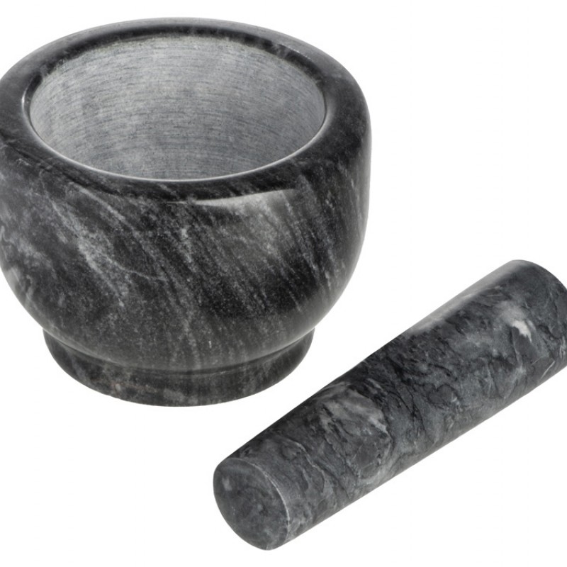 Поставляется в комплекте с пестиком, удобным для обхвата ладонью. Пользоваться ступкой приятно даже просто с точки зрения тактильности, превращая процесс приготовления блюда в почти медитативную практику.