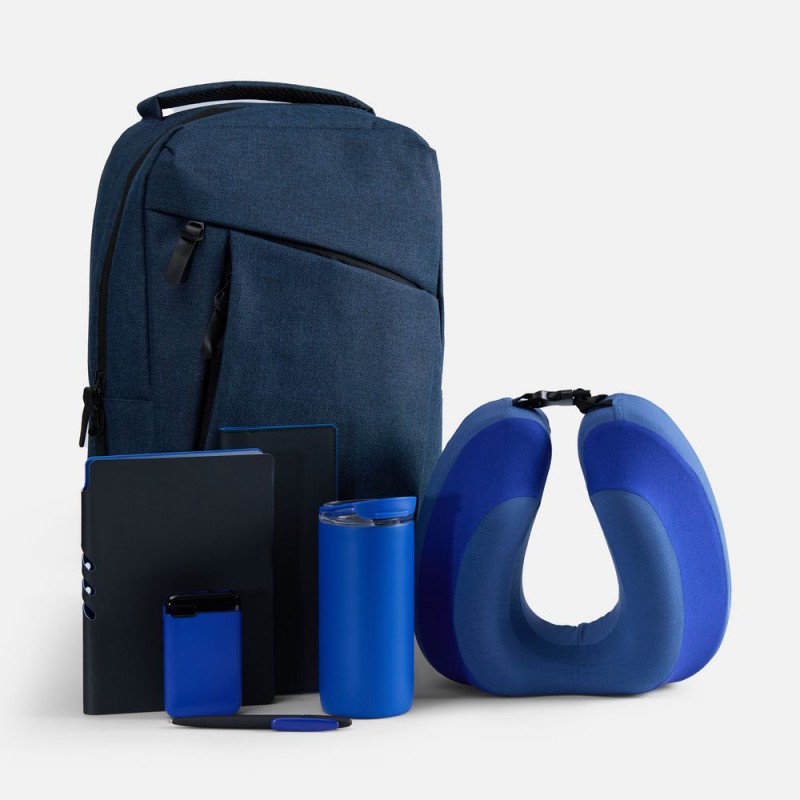 Вместительный рюкзак позволяет с легкостью захватить с собой все необходимое в дорогу. Подушка для путешествий гарантирует максимальный комфорт и поддержку шеи во время долгой поездки или перелета, а с дорожным органайзером все важные документы будут в исключительном порядке. Термостакан позволит утолить жажду или согреться, а аккумулятор обеспечит бесперебойную работу всех устройств. Войти в рабочее русло и спланировать все дела даже на ходу позволят ежедневник и ручка, которые всегда будут под рукой.