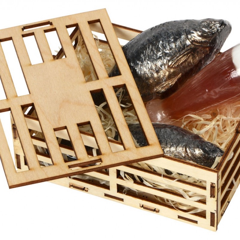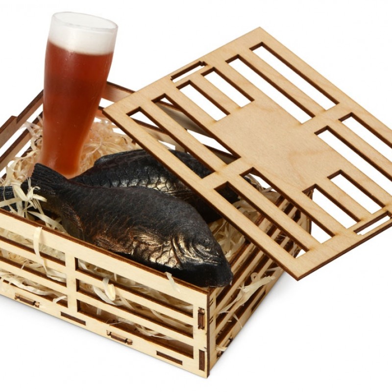 Набор мыла ручной работы Пиво и рыба, в деревянной коробке