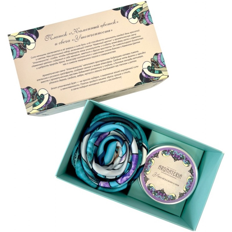 | Материал | платок- 70% искусственный шёлк, 30% вискоза, свеча- алюминий/натуральный соевый воск, парфюмерная композиция |