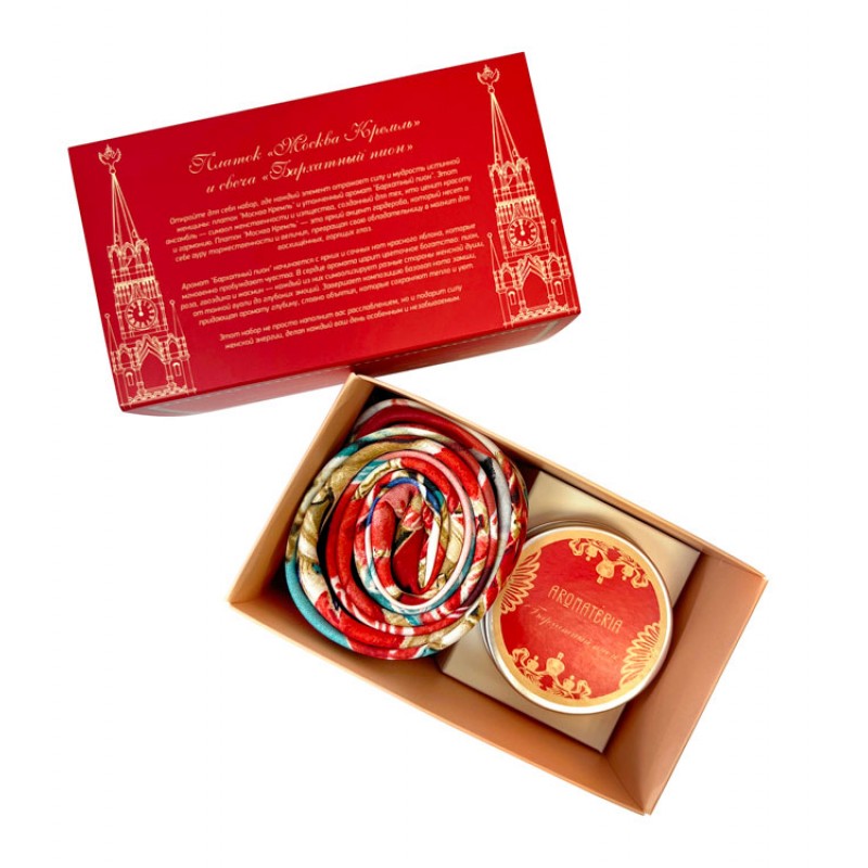 | Материал | платок- 70% искусственный шёлк, 30% вискоза, свеча- алюминий/натуральный соевый воск, парфюмерная композиция |