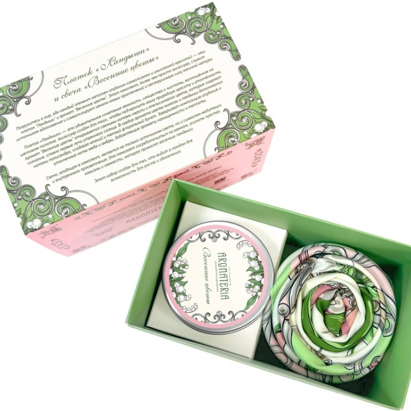 | Материал | платок- 70% искусственный шёлк, 30% вискоза, свеча- алюминий/натуральный соевый воск, парфюмерная композиция |