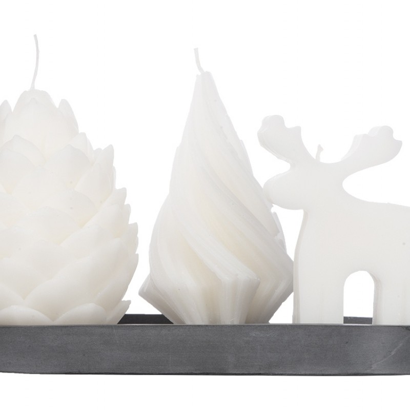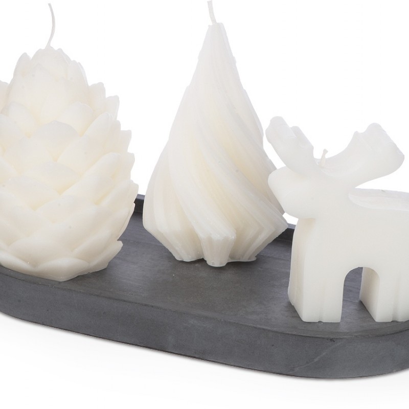 В набор входят три свечи на подставке — неотъемлемые символы Нового года и Рождества - это сосновая шишка, рождественский олень и, конечно же, елка, как главный символ нового года!