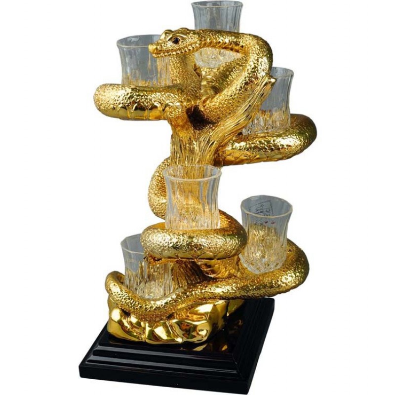 Змея — древний символ мудрости, плодородия и долголетия. Именно поэтому авторы изделия выбрали этот анималистический образ для скульптурной подставки под стопки. Это изысканный бизнес-подарок со вкусом и смыслом для тех, кто ценит тонкую работу высококлассных мастеров и неравнодушен к образным, сложным в исполнении предметам столовой сервировки. В комплекте подставляется 6 стеклянных стопок, что делает набор полноценным сувениром для бизнес-партнеров и других важных персон.
