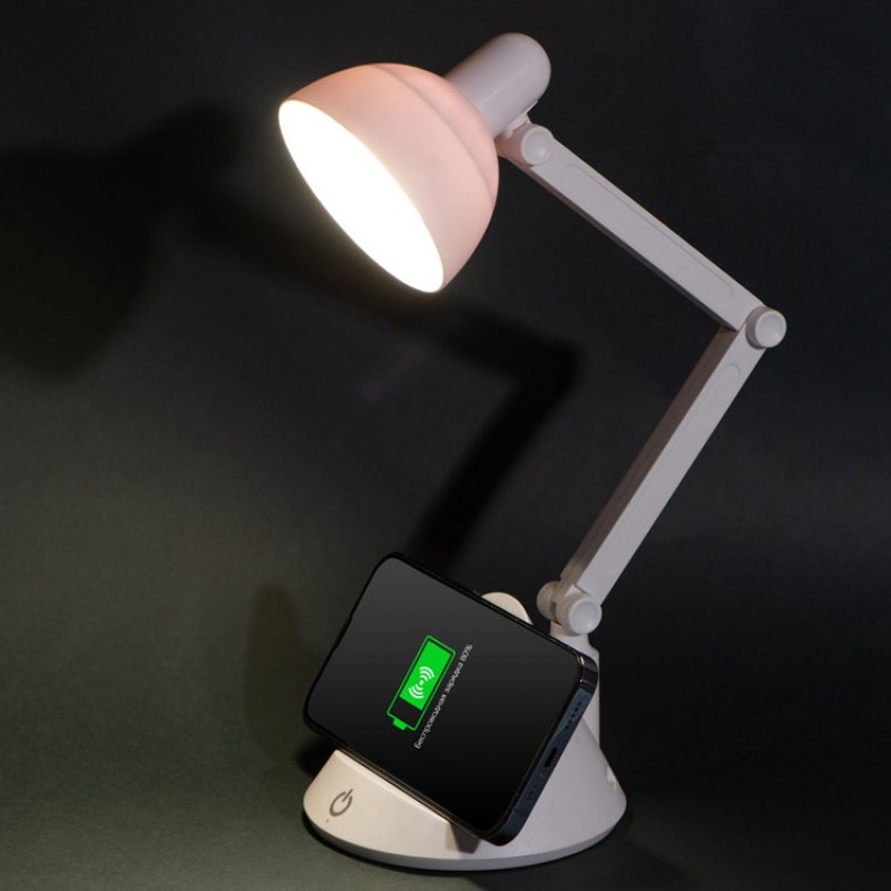 Светильник компактный, его можно зафиксировать в различных положениях. Имеет три режима освещения — теплый, нейтральный и холодный. - беспроводная зарядка Qi-совместимых устройств