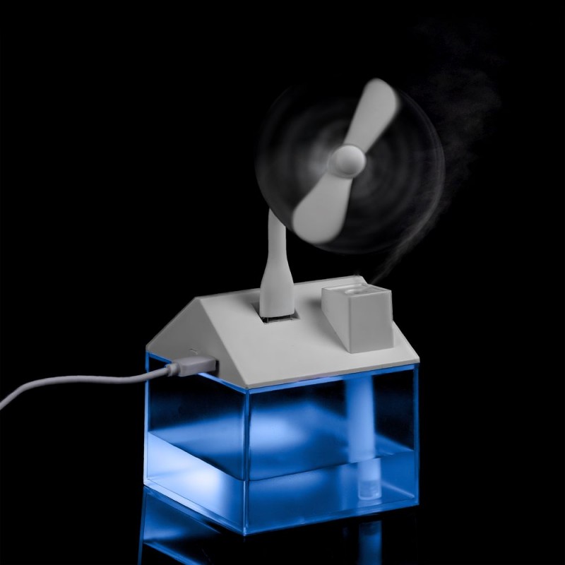 На работе — как дома.Уютный увлажнитель Arioso в форме домика наполняет влагой воздух в помещении, создавая приятную атмосферу и комфортную среду в течение всего рабочего дня. Благодаря компактному размеру увлажнитель легко разместить на столе.Портативная лампа и вентилятор дополняют функционал устройства.