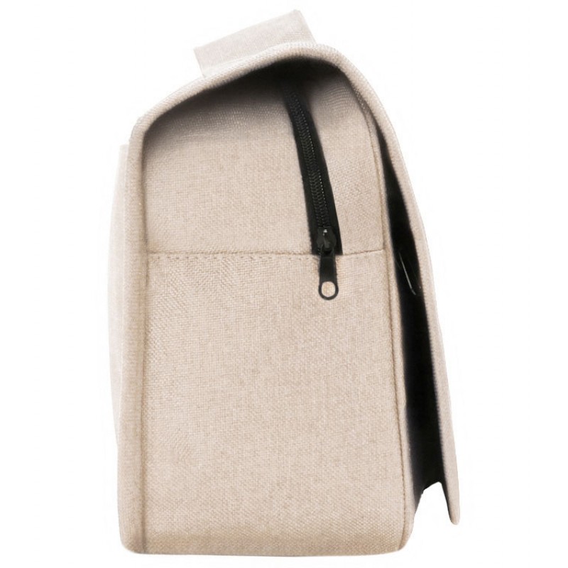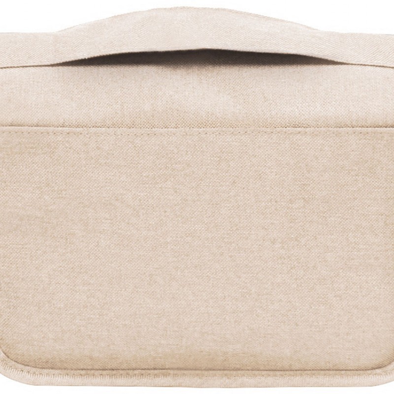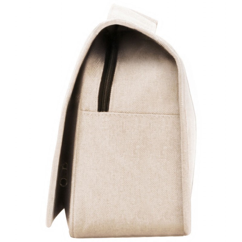 Основное отделение несессера — объемное, с сетчатой вставкой для обзора, на молнии, имеет также наружный непрозрачный карман на молнии. Внутри этого отделения — два боковых объемных кармана под флаконы или баночки и два на стенке, а также есть укрепляющая накладка на дно, которую при необходимости можно отодвинуть для экономии места.