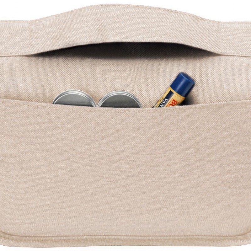 - прозрачный карман из ПВХ для флаконов с жидкостями, который легко очистить