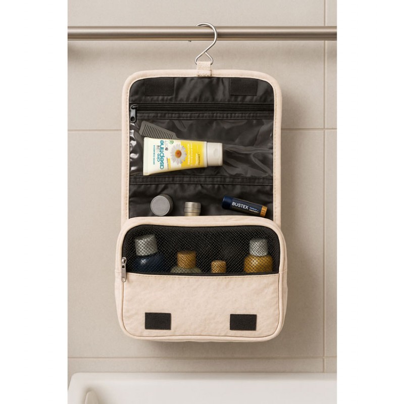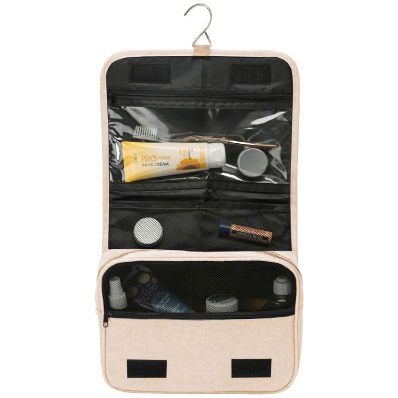 Несессер Planar оснащен металлическим крючком для подвешивания, который в сложенном виде убирается внутрь и не будет вам мешать. Для переноски несессер имеет ручку снаружи, а еще вы найдете плоский вместительный карман на его задней стороне. Клапан несессера закрывается на липучки и имеет три кармана — большой на молнии из прозрачного материала, который легко моется, даже в случае, если флакон изнутри разгерметизировался, и два из сетки, куда можно положить необходимые мелочи и которые удобнее использовать в висящем виде.