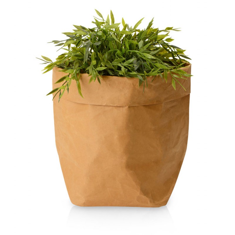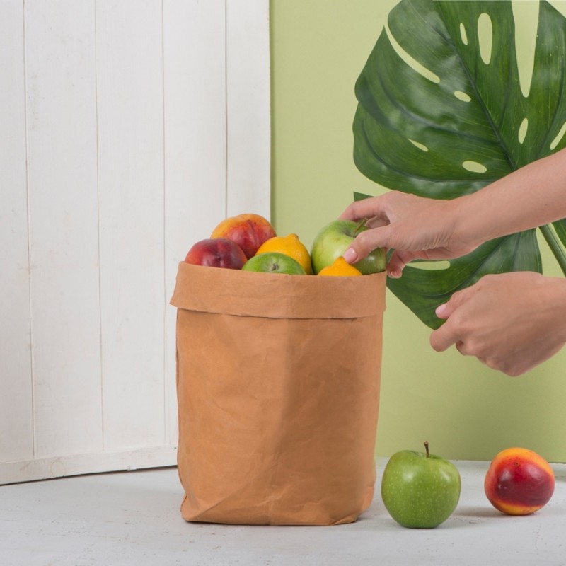 Водонепроницаемый органайзер из крафтовой бумаги представляет собой плотный пакет, который можно использовать различным образом. Он может использоваться для хранения овощей и фруктов в холодильнике, быть местом хранения для мелочей в офисе, в него можно поставить горшок с цветком и поддоном для декоративных целей или завернуть ланчбокс, прежде чем отправиться на работу — сценариев применения можно придумать множество.
