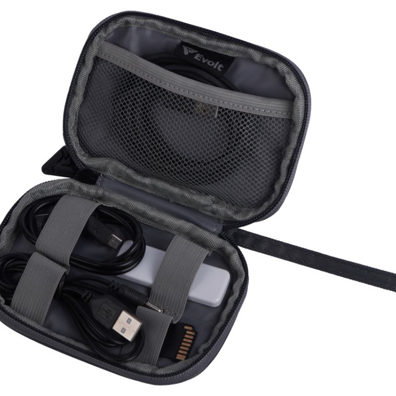 • Сетчатый карман и отсеки на резинке позволяют аккуратно распределить провода так, чтобы они не спутывались и были легкодоступны в любой момент