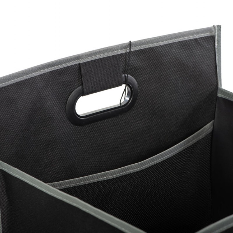 Органайзер для багажника помогает содержать в чистоте автомобиль и аккуратно складывается для хранения во время его неиспользования. Имеет два наружных кармана для дополнительных вещей и два внутренних отделения. Ручки с мягкими подкладками для удобной переноски.