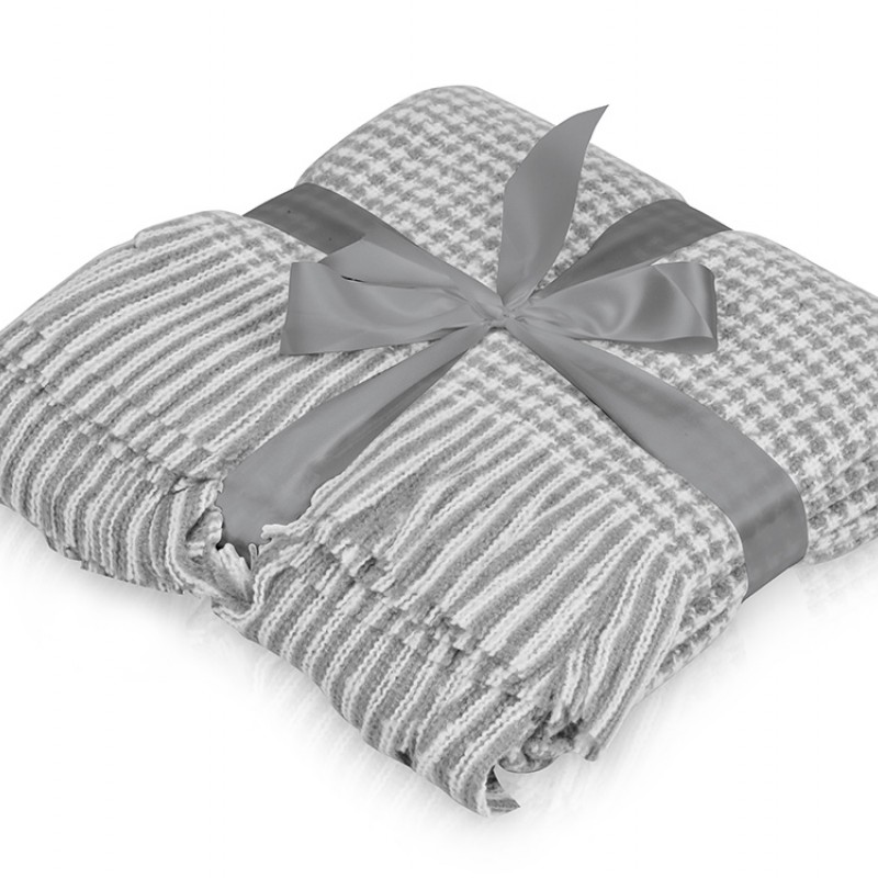 Супер мягкий и теплый плед согреет в холодный день и внесет уют в ваш интерьер. По бокам плед украшен бахромой. В комплекте серая лента, на которой можно нанести ваш логотип.