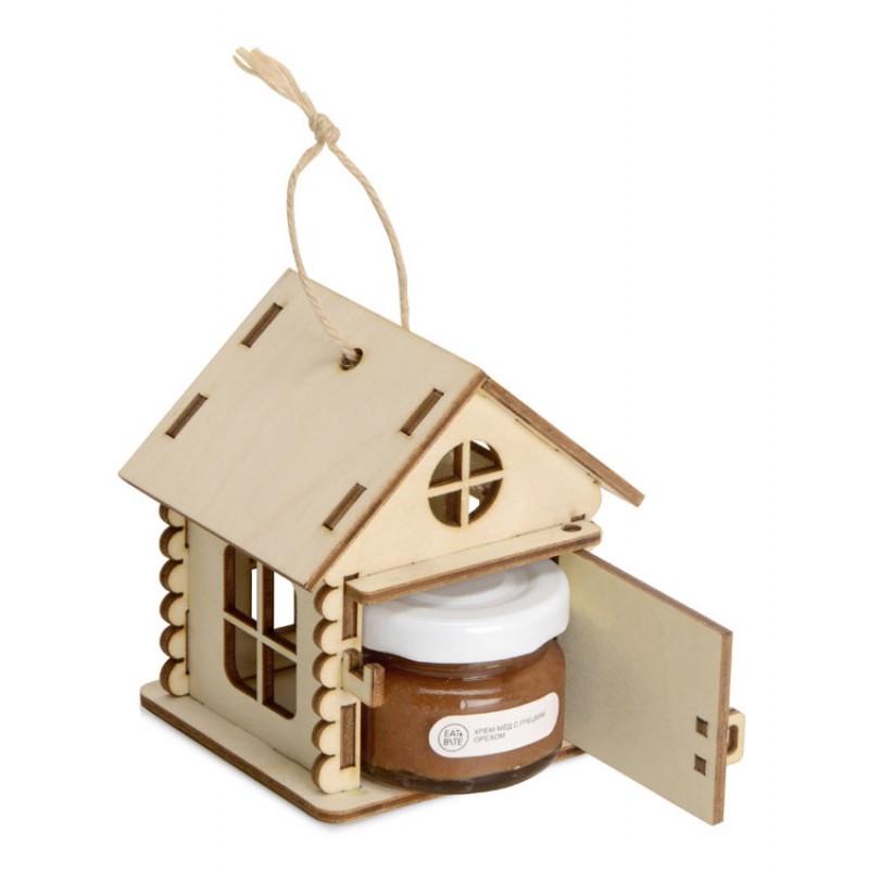 В домике открывается дверца, и в него можно поместить небольшую баночку с медом или вареньем. Оригинальная конструкция сувенира украсит любой интерьер, как в офисе, так и в квартире. Подарочная упаковка Домик позволит вам сделать оригинальный и запоминающийся подарок для руководителя или коллеги. Гравировка (CO2 лазер) (Без чернения) на данный товар осуществляется бесплатно. Оплачивается только настройка оборудования в размере 950 рублей на весь тираж.