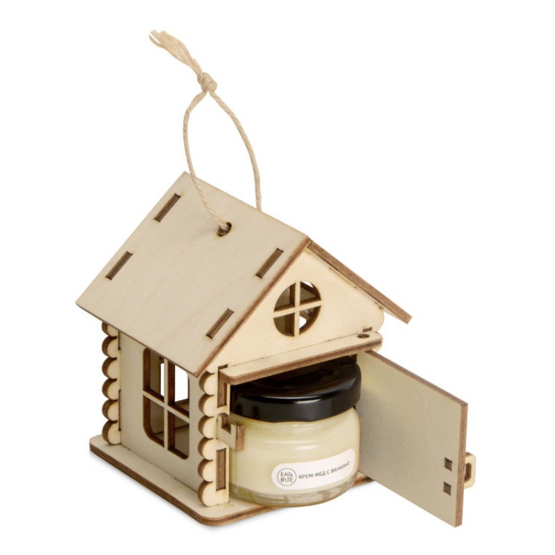 В домике открывается дверца, и в него можно поместить небольшую баночку с медом или вареньем. Оригинальная конструкция сувенира украсит любой интерьер, как в офисе, так и в квартире. Подарочная упаковка Домик позволит вам сделать оригинальный и запоминающийся подарок для руководителя или коллеги. Гравировка (CO2 лазер) (Без чернения) на данный товар осуществляется бесплатно. Оплачивается только настройка оборудования в размере 950 рублей на весь тираж.